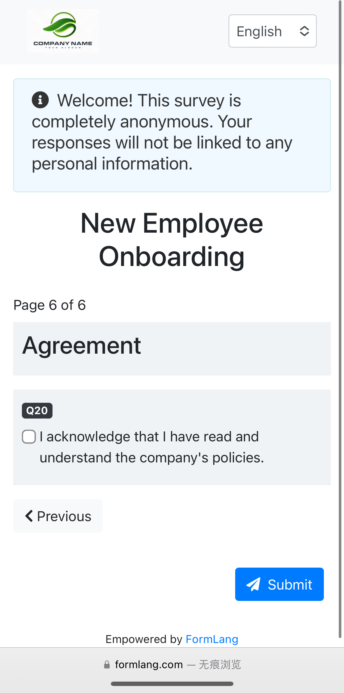 FormLang is more than just forms. It's a comprehensive platform designed to connect your organization with the people who matter most - your employees, your valued visitors, and even anonymous feedback providers. Whether you're looking to boost internal productivity, elevate the visitor experience, or gather crucial insights, we have the perfect solution tailored to your needs.