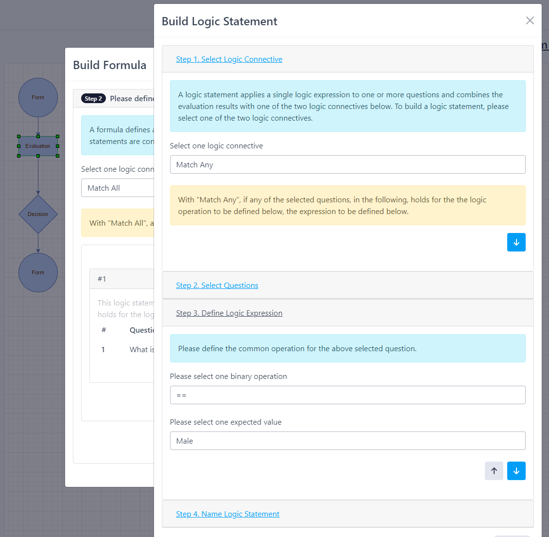 - Create a dataflow to define the form logic to hide/show/disable/enable questions based on the respondent's inputs.