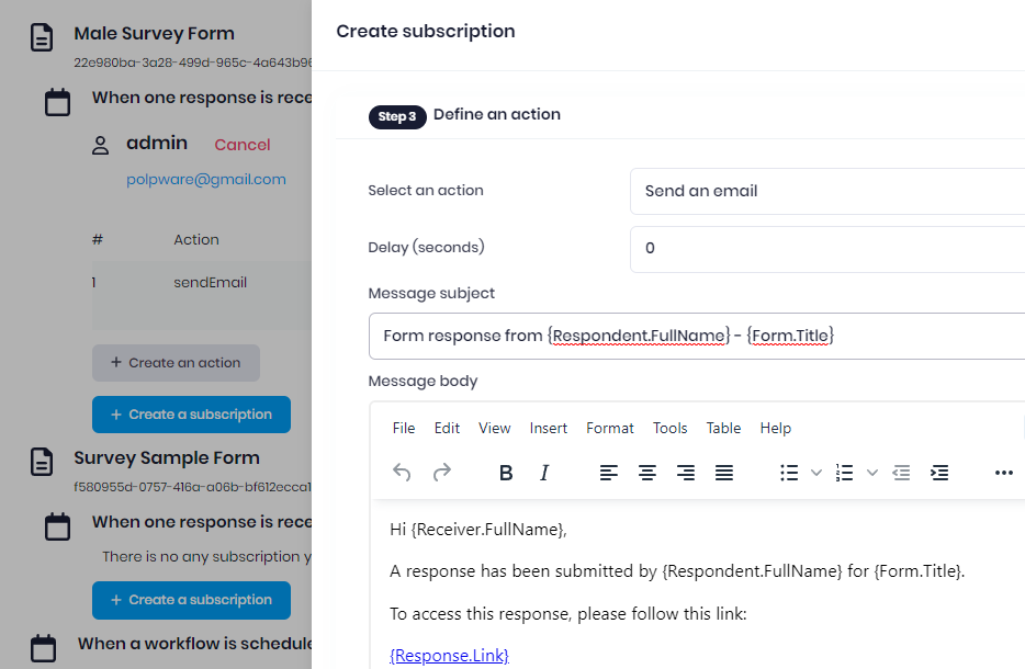- With form actions, you can automate tasks that would otherwise be manual, such as evaluating responses, sending notifications, and triggering customized events.